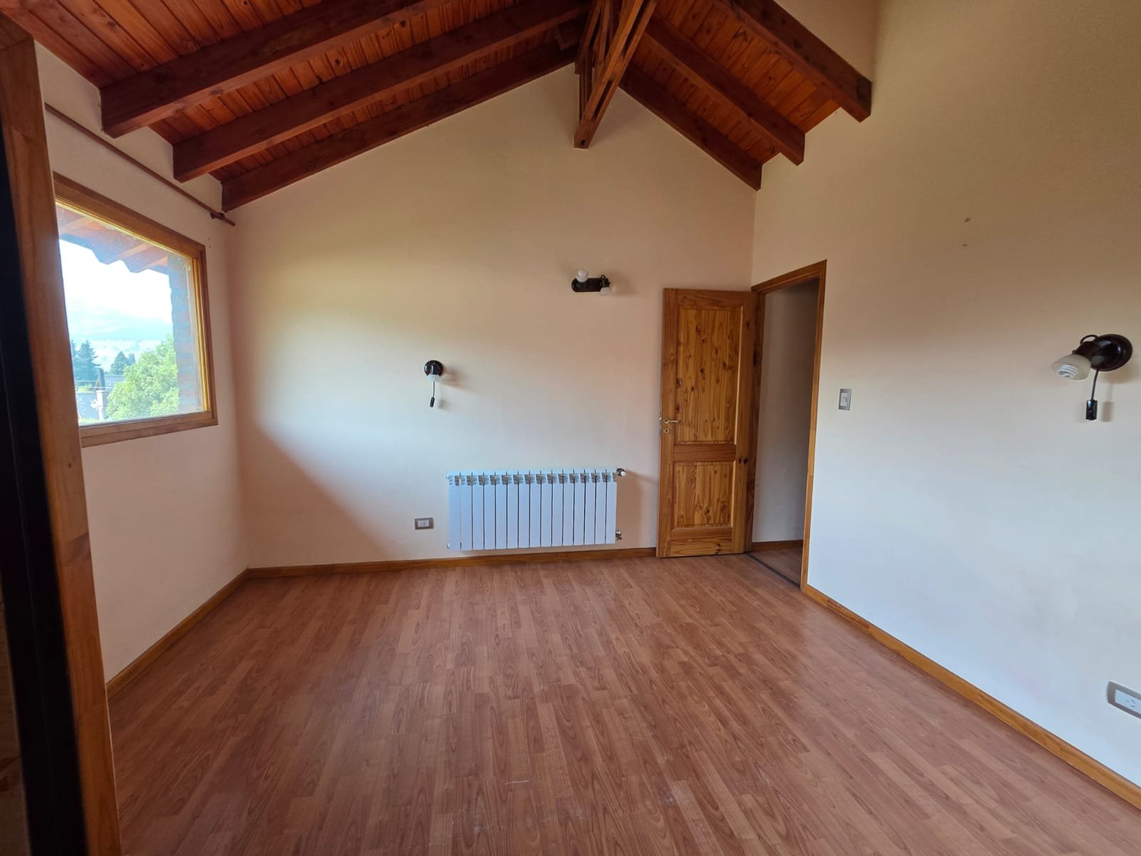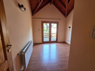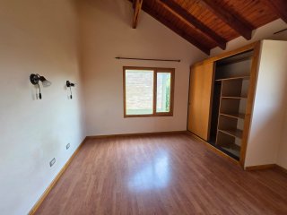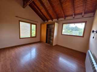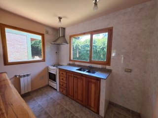 Moderna cabaña en alquiler permanente ubicada en Villa Ayelén, Esquel, dentro de complejo de cabañas con unidades independientes (no apareadas), en entorno residencial tranquilo. Desarrollada en dos plantas: en planta baja cuenta con living–comedor amplio, cocina integrada con barra desayunadora y toilette. En planta alta posee 2 dormitorios con pisos flotantes y placares (uno con balcón al frente) y baño completo con bañera. Calefacción por radiadores con caldera. Espacio para guardar vehículo. Patio compartido. Martillero Público y Corredor Público Inmobiliario responsable Gabriel Alejandro Gaitán Mat. Nº 262 (COCICH)