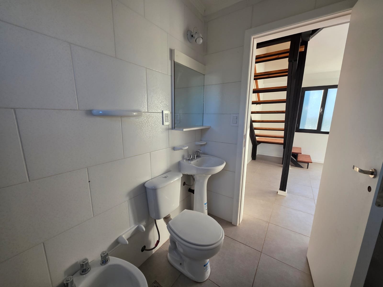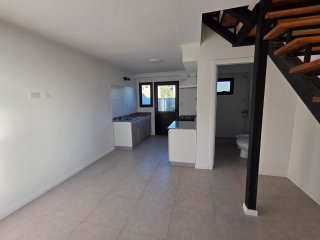 Departamento tipo dúplex de construcción moderna (2 años de antigüedad) ubicado sobre la calle Desalojo del 37, en el Barrio Buenos Aires, en un sector de fácil acceso en Esquel. Una propiedad compacta, funcional y diseñada con criterios de eficiencia energética. Distribución de la Unidad: Planta Baja: Acceso: Espacio de estacionamiento vehicular propio al frente. Estar-Comedor: Ambiente integrado con cocina, optimizando el aprovechamiento de los metros cuadrados. Sanitarios: Baño completo con revestimientos modernos. Exterior: Pequeño patio trasero individual Planta Alta: Dormitorios: Dos habitaciones de dimensiones compactas, ambas equipadas con sus respectivos placares. Especificaciones Técnicas y Servicios: Aislación: Aberturas de Doble Vidrio Hermético (DVH) en todos los ambientes. Confort térmico garantizado y reducción de ruidos exteriores. Calefacción/Cocina/Calefactores: Actualmente con sistema de gas envasado (tubos). Conexión a red de gas natural en trámite administrativo avanzado. Estado: Excelente estado de conservación, pintura e instalaciones. Disponibilidad inmediata. Consulte para coordinar una visita personalizada. Martillero Público y Corredor Inmobiliario Responsable Gabriel A. Gaitán Mat. Nº 262 (COCICH)